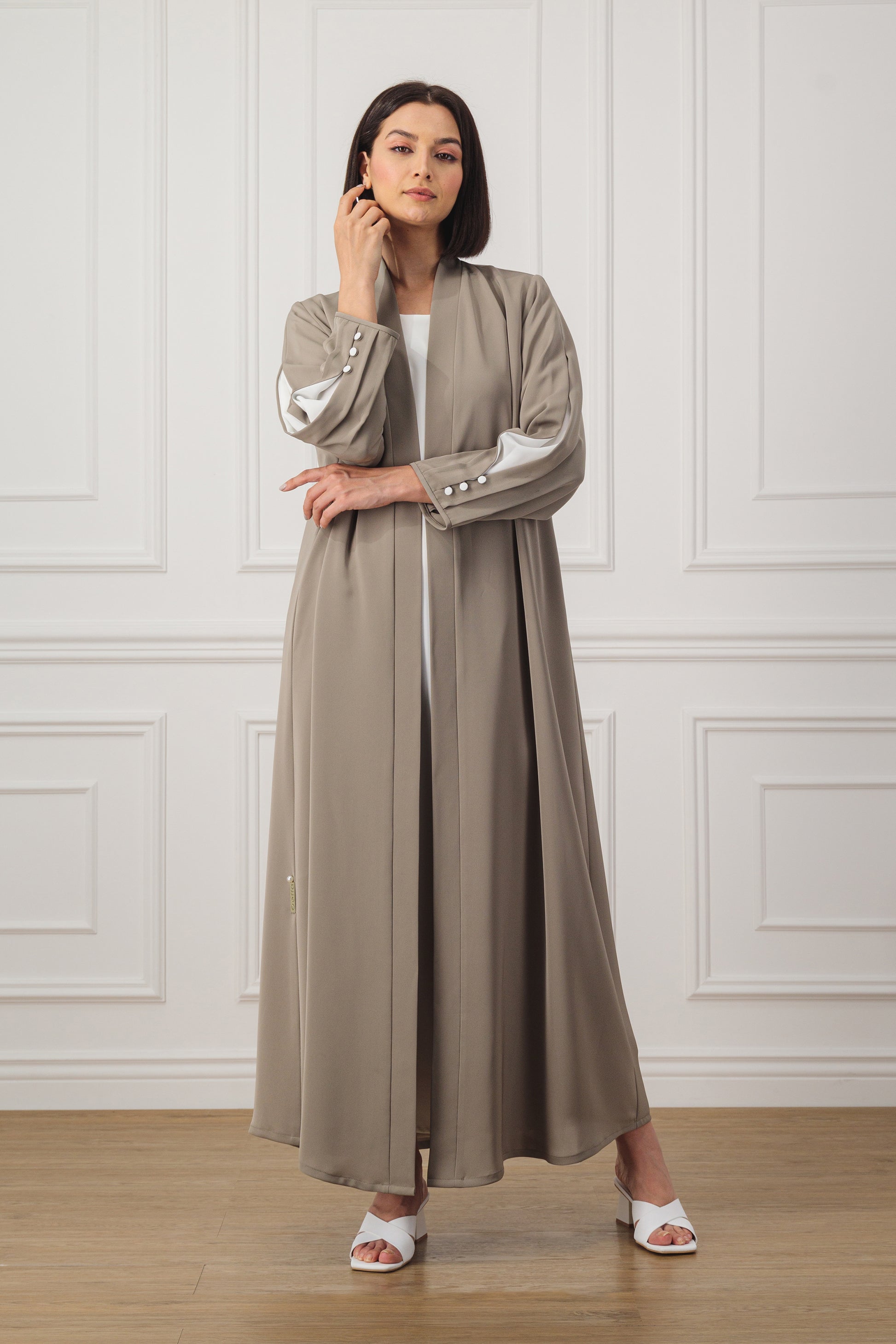 A-line Abaya with contrast box pleats and buttons on the sleeves