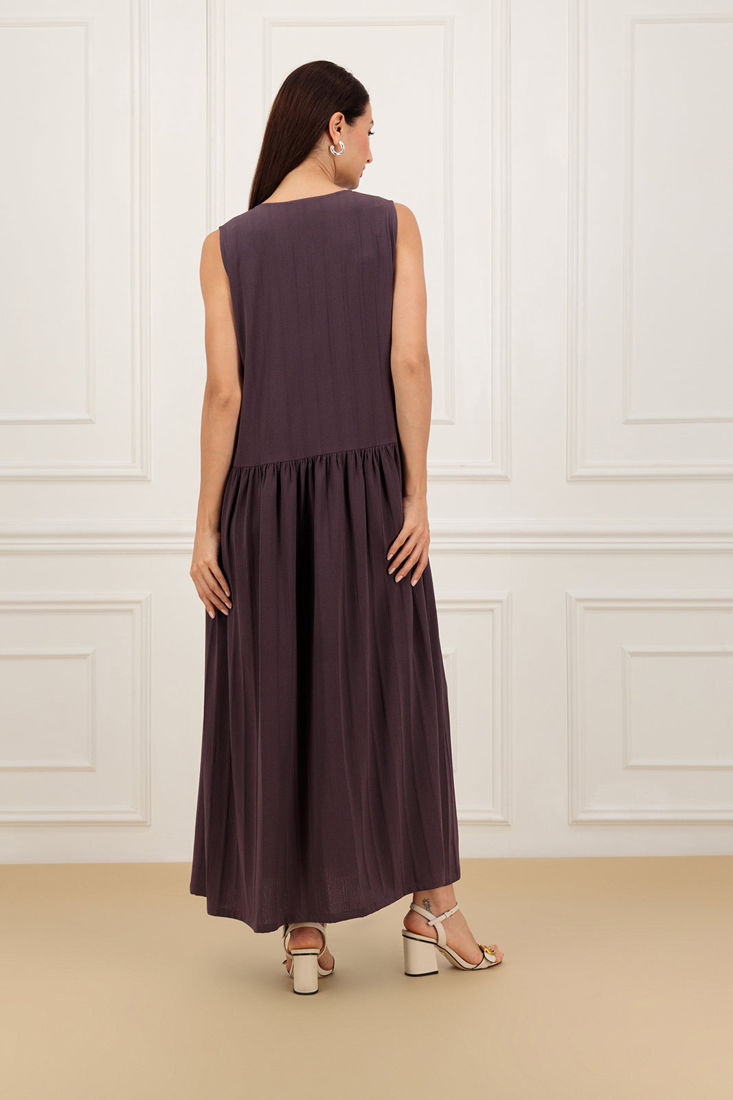 Introducing our round-neck dress, elegantly adorned with mother of pearl button details, paired with a matching farasha cut abaya. Crafted from lightweight, textured bubble cotton with a subtle striped pattern, this abaya infuses modern energy into a comfortable and stylish set