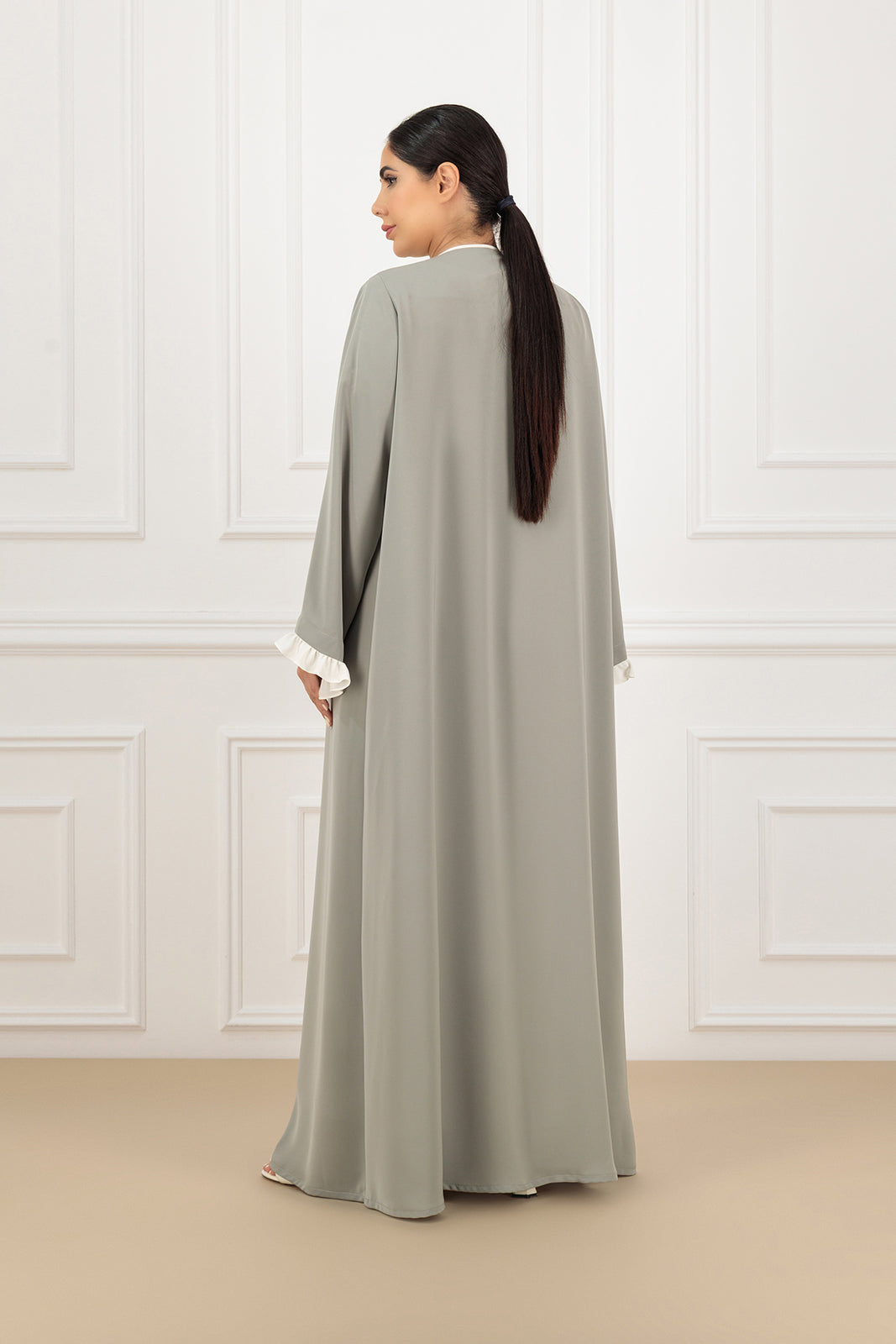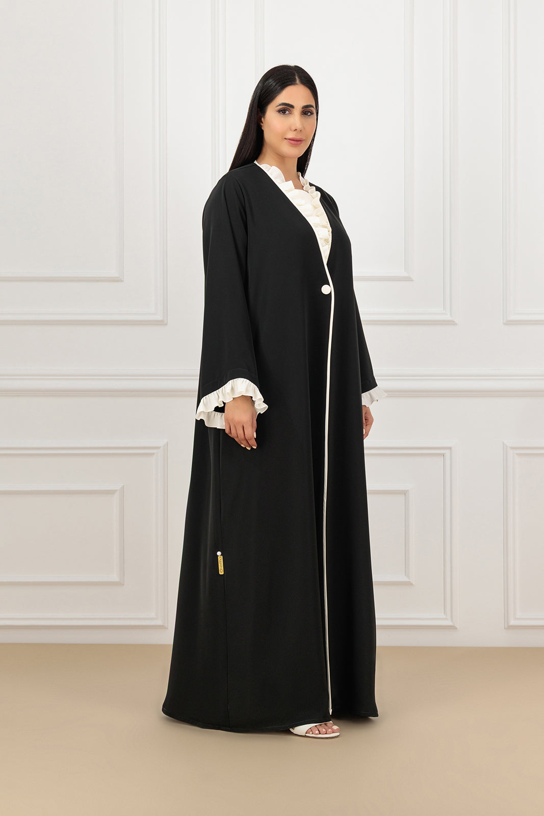 Designed with a statement flared collar, this abaya blends classic style with a contemporary edge.