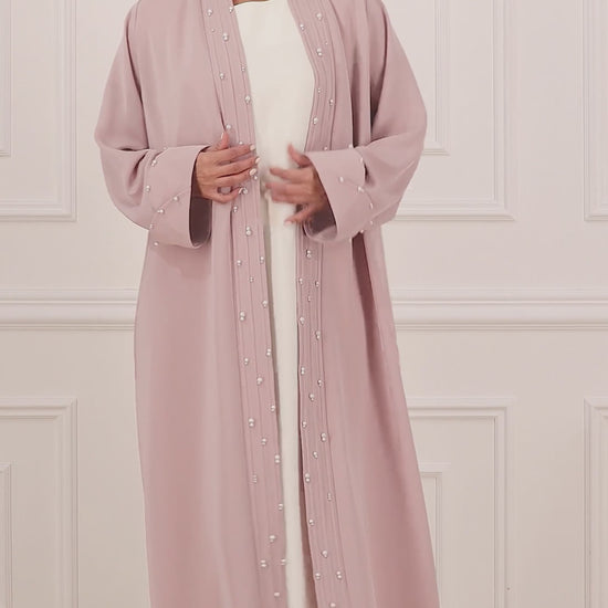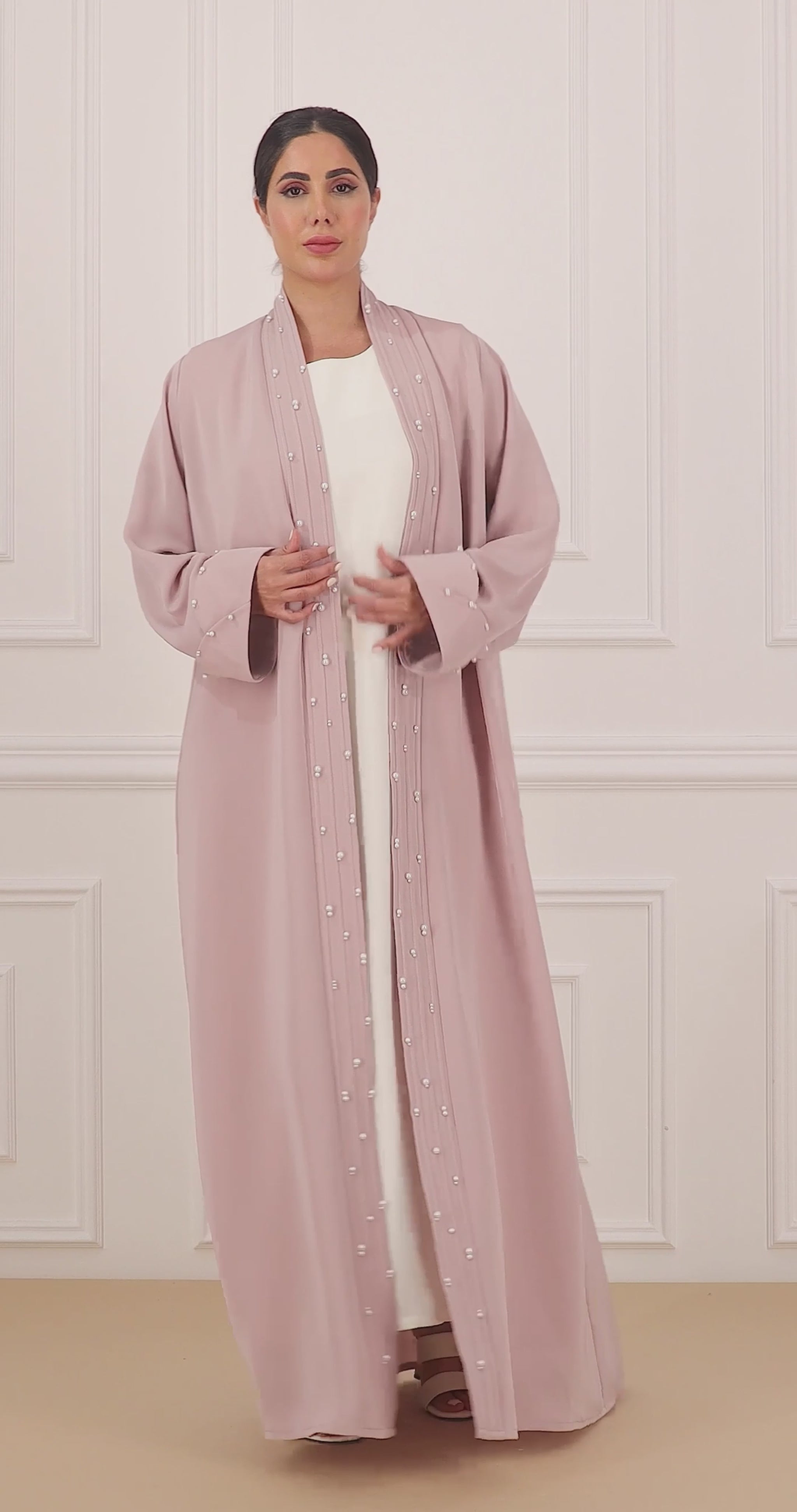 Intricately embroidered with lustrous pearls, this abaya redefines modest luxury with every detail.