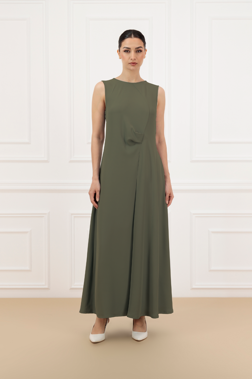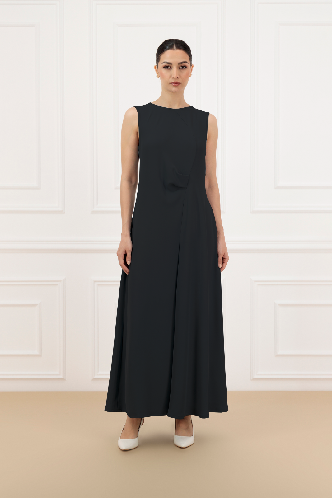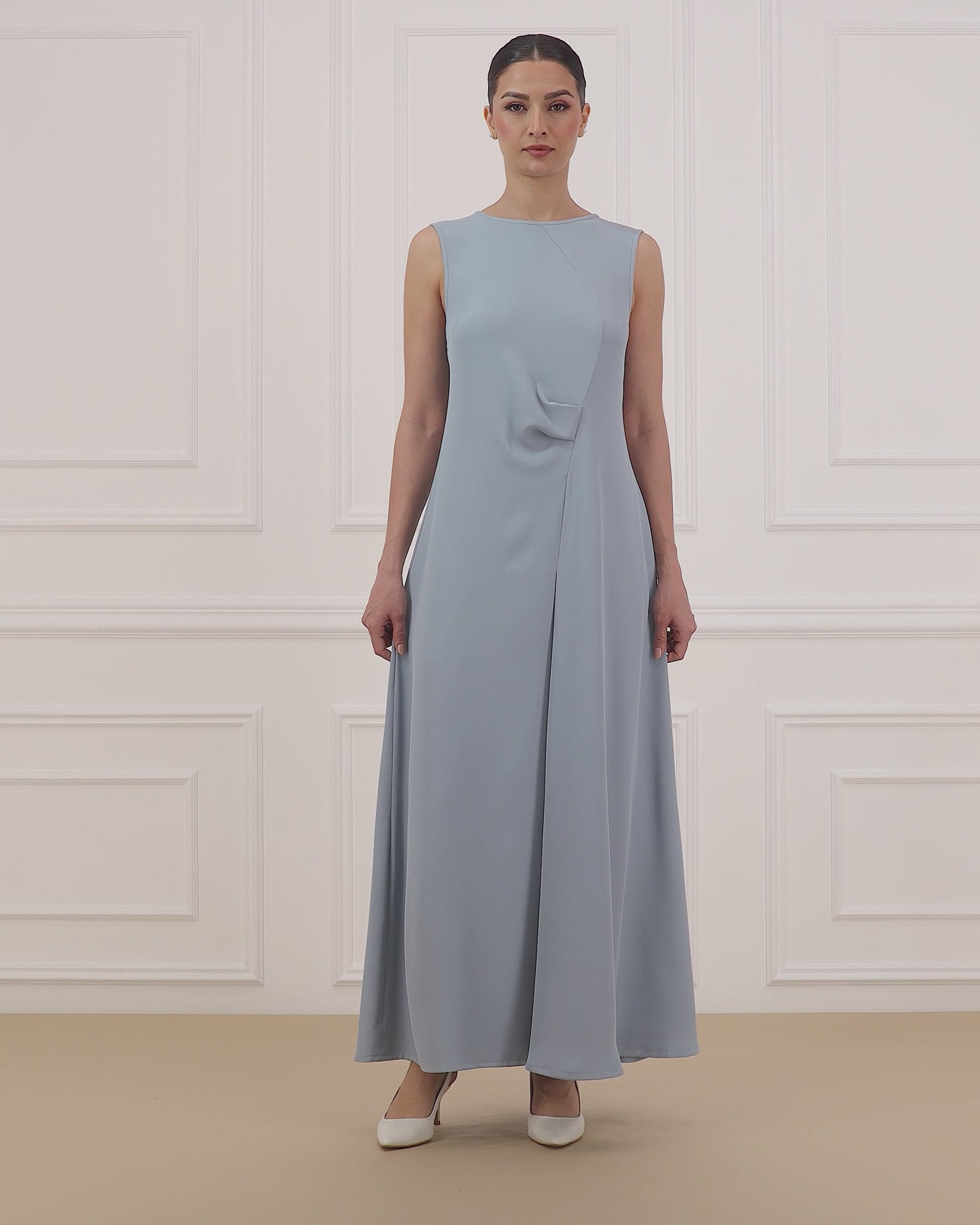 Our stunning asymmetrical dress, featuring elegant waist detailing, exudes sophistication and grace.
