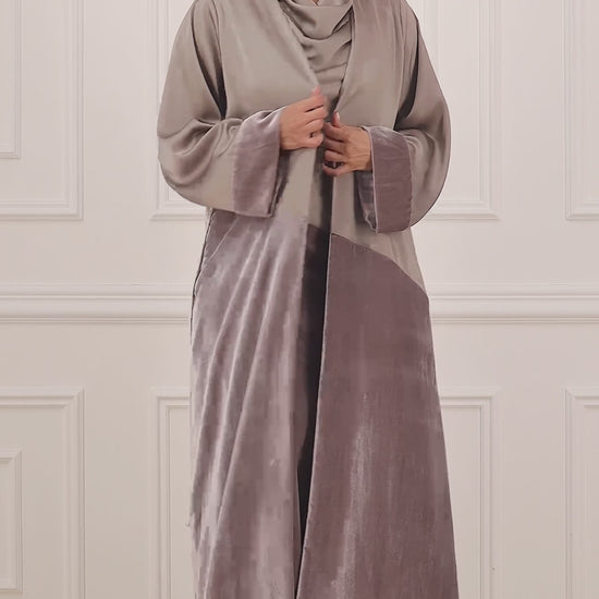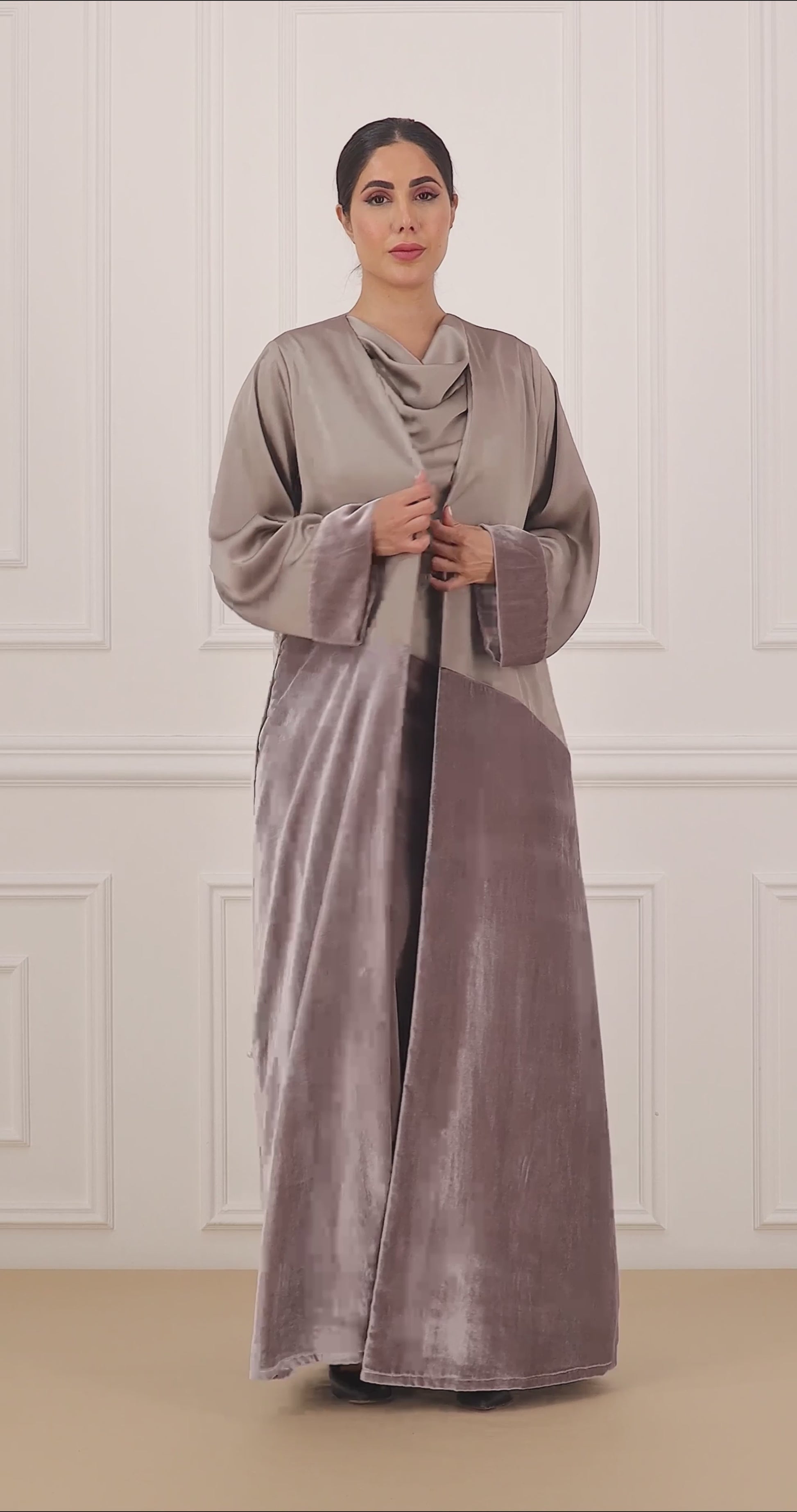 A timeless piece that blends soft satin with rich velvet for a luxurious look. The two-tone design adds depth and elegance, making it perfect for work, special occasions, or evening outings.