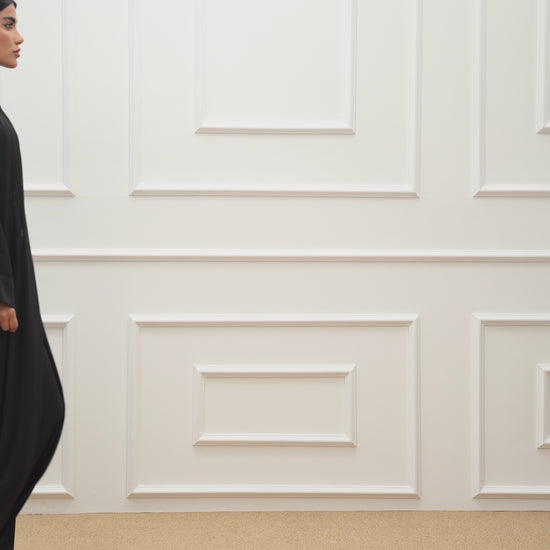 Luxurious farasha-style abaya in textured silk, flowing elegantly for a graceful and stylish look.