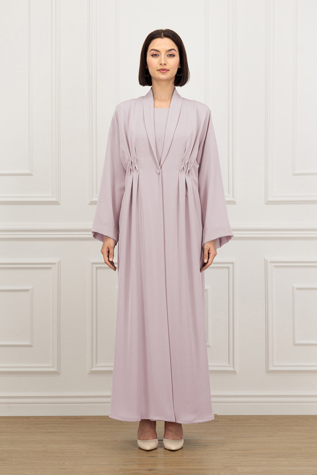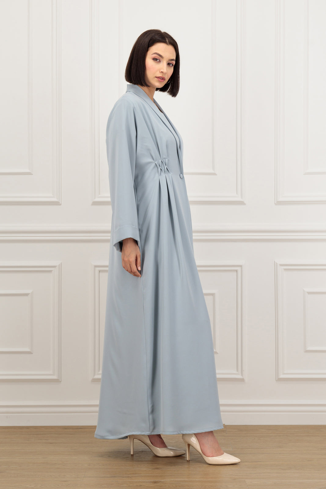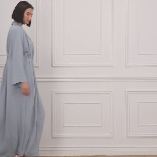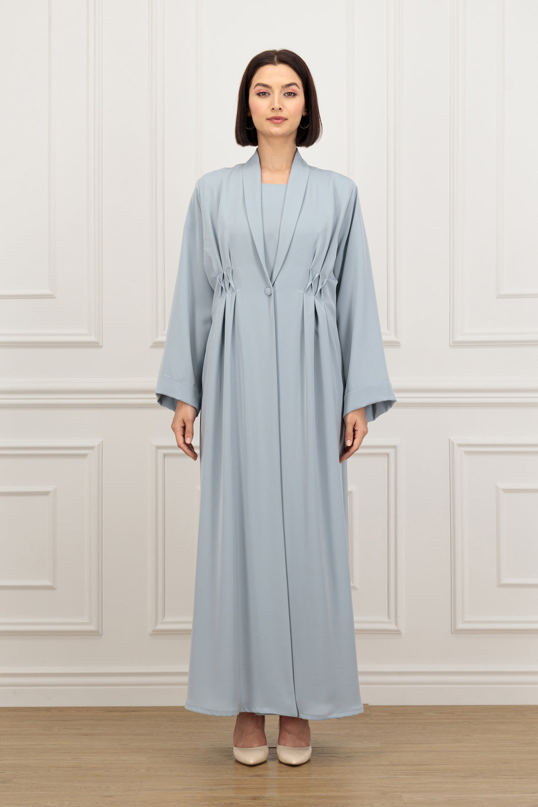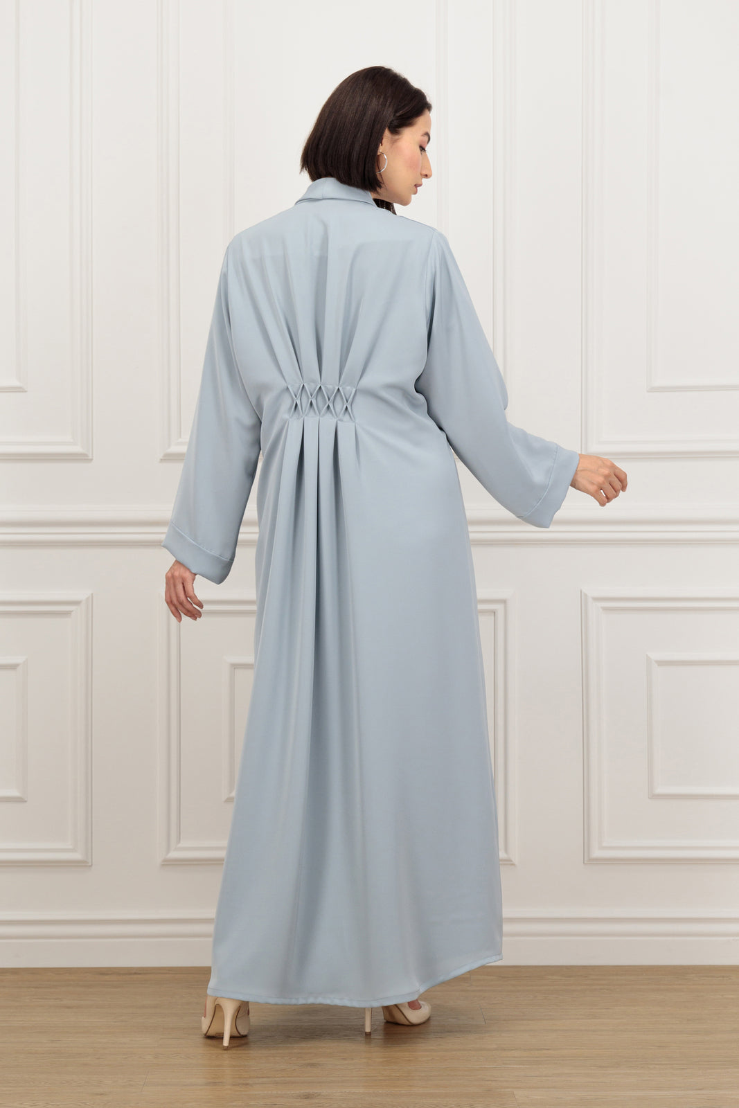 Celebrating the womanhood every day. Our timeless pale blue Abaya made from premium Nida fabric, delicately designed with block pleats is perfect for the special occasions. Comes in a variety of colors.